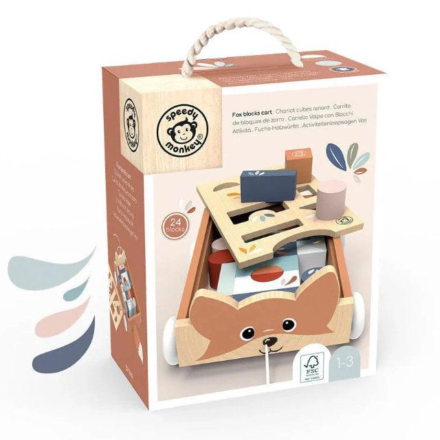 The Speedy Monkey Fox Block Cart is a beautifully designed wooden push toy created to support toddlers as they develop balance, strength and confidence during their first steps. Blending charming design with practical function, this delightful cart features an adorable fox character that instantly captures a child’s interest and encourages them to explore movement in a fun and engaging way.