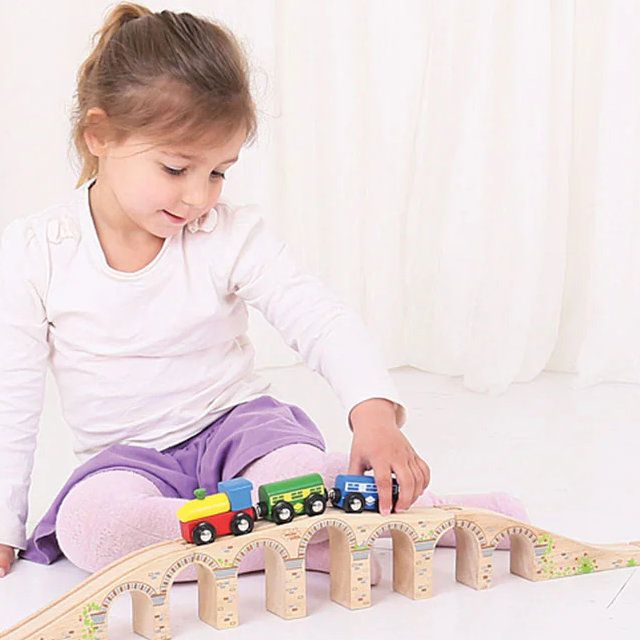 Take your wooden railway adventures to new heights with the Bigjigs Railway Viaduct. This sturdy wooden bridge accessory lets engines climb up, cross over, and race down, adding excitement and variety to every track layout.