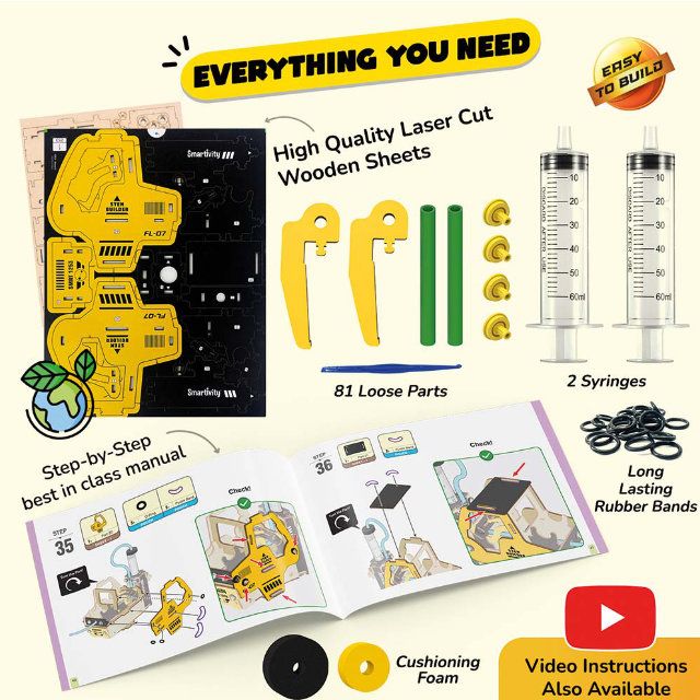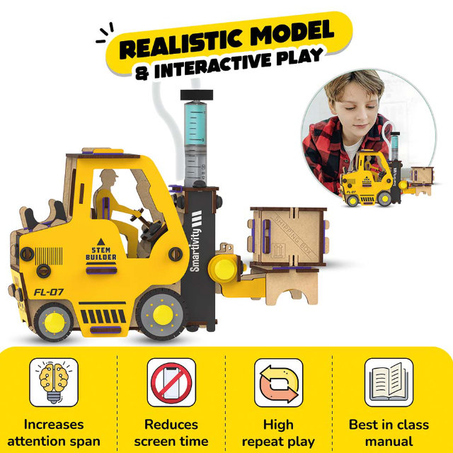 Introduce your child to the exciting world of mechanics with the Smartivity Hydraulic Forklift, a hands-on STEM construction toy designed for kids aged 6 and above. Using eco-friendly wooden parts and step-by-step illustrated instructions, children can build a fully functional forklift powered by a real hydraulic system.