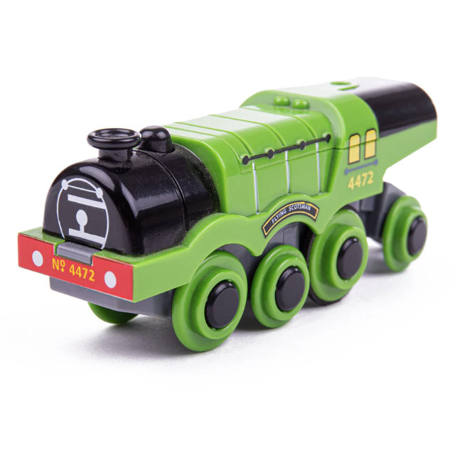 Fully compatible with most wooden railway track systems, the Flying Scotsman Train is an ideal addition to any existing wooden train set. Strong magnetic couplings ensure easy connection to other engines and carriages, while smooth wheels provide reliable movement across curves and straight sections alike. Crafted from high-quality, responsibly sourced materials, this durable wooden locomotive is built to last and meets all essential safety standards.