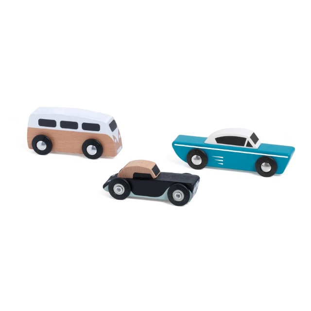 The Classic World Touring Car Set encourages open-ended play as children invent destinations, characters, and journeys, supporting early learning and creative development. Its timeless design and neutral colour palette make it a stylish addition to any playroom or toy collection.