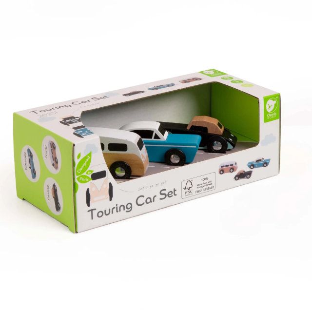 Ideal as a gift for young vehicle lovers, this wooden touring car set combines quality craftsmanship, educational value, and lasting appeal from Classic World Toys.