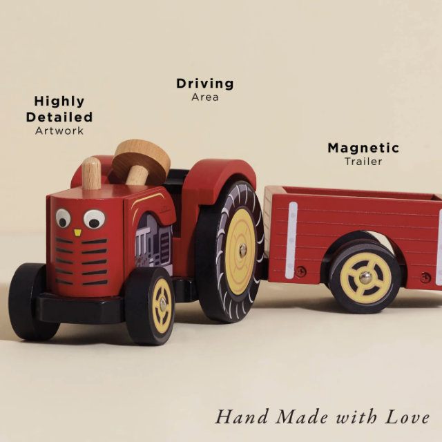 With its classic red design and sturdy trailer, children can load, tow, and explore, encouraging imaginative storytelling and hands-on play. The smooth wooden finish and durable build make it ideal for everyday adventures, whether indoors or out.