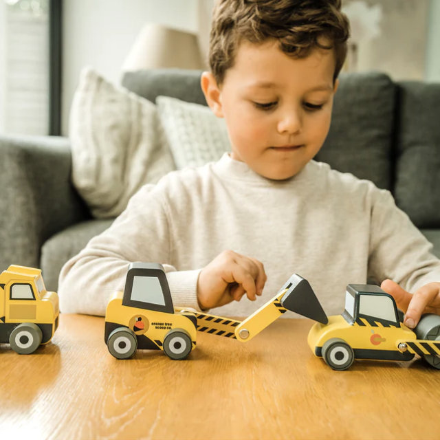 Get ready for hands-on construction fun with the Orange Tree Toys Roadworks Vehicles, a colourful wooden vehicle set designed to spark imagination and early learning.