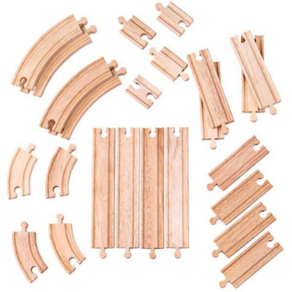 The Curves and Straights Expansion Set includes a selection of high-quality wooden track pieces, featuring both curved and straight sections. These additional track pieces seamlessly integrate with your existing wooden railway, allowing you to build intricate layouts, loops, and custom designs.